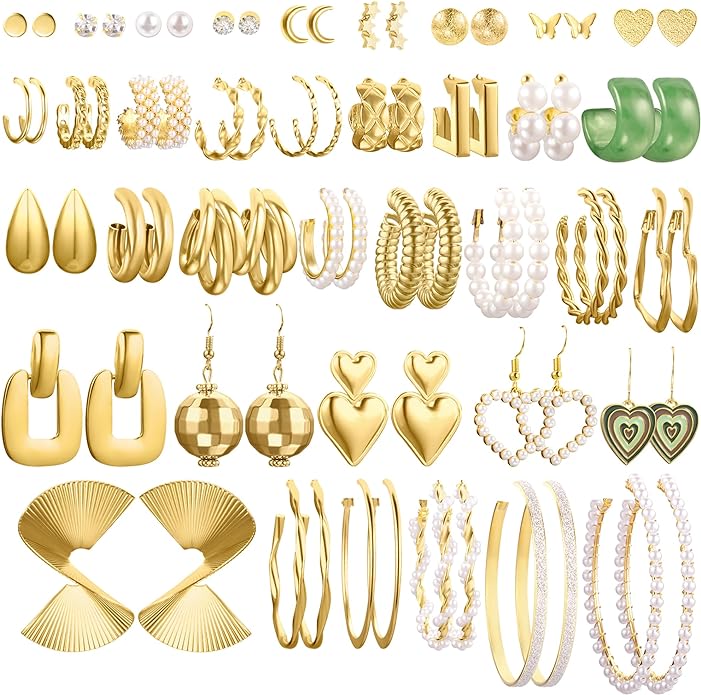 - 37 Pairs in 1 Pack: This value pack comes with 37 pairs of different earrings such as stud earrings, heart dangle earrings, small hoop earrings and chunky hoop earrings, adding a beautiful comprehensive set to your earring collection.